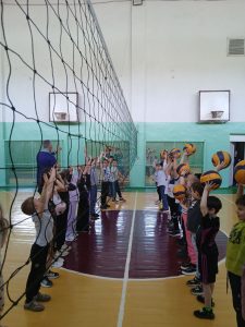Основна частина розпочалась із розповіді та демонстрації вірної стійки під час передачі м’яча двома руками зверху. Далі Микола Володимирович поділив усіх дітей на пари, давши кожній парі волейбольний м’яч. Спочатку діти по черзі виконували підвідні вправи, потім поступово підходили до роботи біля сітки. Вправи мали ігровий характер: діти працювали у стійці з м’ячами у парах, виконували кидки м’яча двома руками з-за голови по траєкторії, здійснювали котіння м’яча, зі зміною вихідного положення, здійснювали кидки м’яча двома руками з-за голови в майданчик, перекидали м’ячі через сітку, натомість інші учні мали їх зловити. Завдяки чітко побудованій структурі уроку, кожна дитина була залучена до активної участі. Під час вивчення передачі м’яча двома руками зверху діти виконували імітаційні та підвідні вправи, а потім спробували виконати декілька передач.