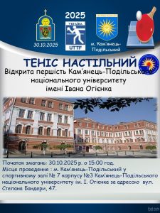 Відкрита першість Кам’янець-Подільського національного університету імені Івана Огієнка з тенісу настільного