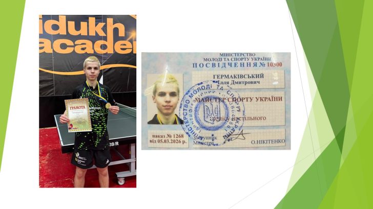 Здобувачу вищої освіти К-ПНУ Іллі Гермаківському присвоєно звання «Майстер спорту України» з тенісу настільного