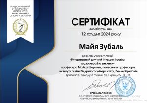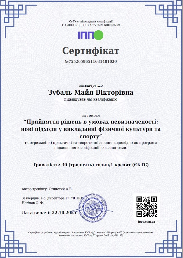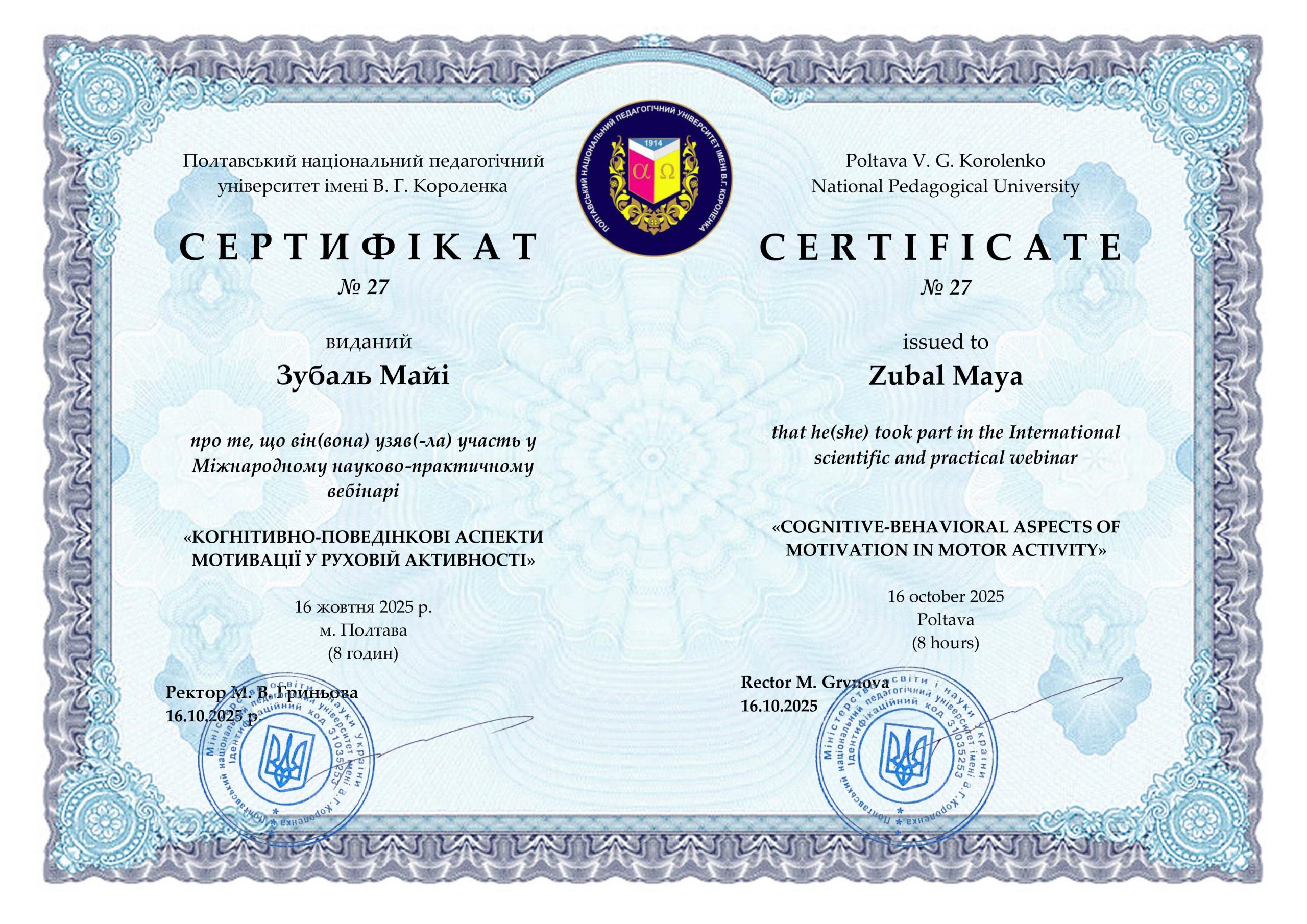 Зубаль Майя Вікторівна – кандидат наук з фізичного виховання та спорту,  доцент
