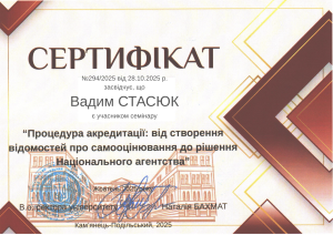 Стасюк Вадим Анатолійович – кандидат наук з фізичного виховання та спорту,  старший викладач
