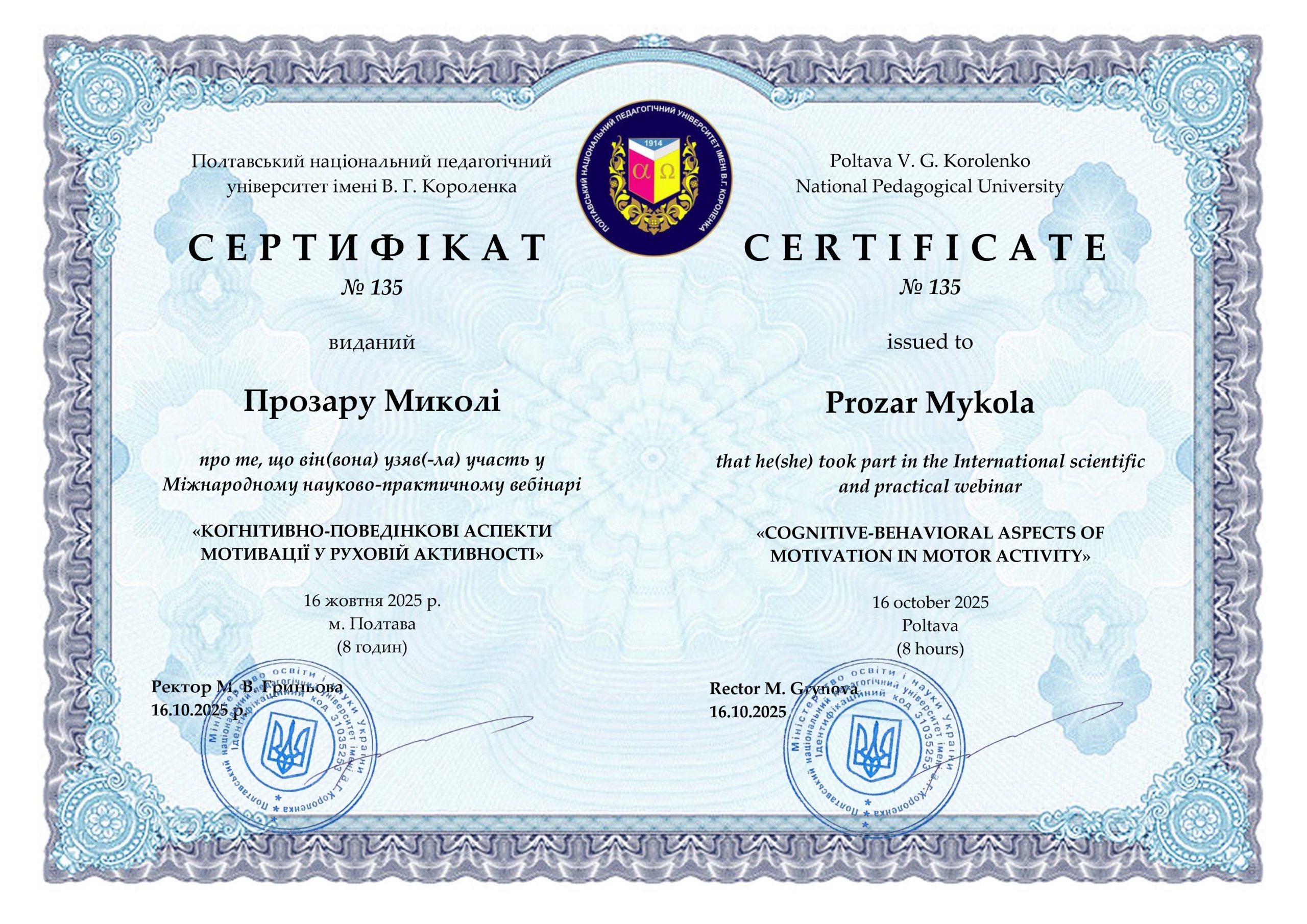 Завідувач кафедри –  Прозар Микола Володимирович – кандидат наук з фізичного виховання та спорту,  доцент