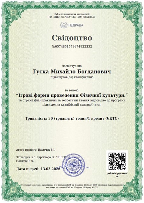 Гуска Михайло Богданович – кандидат наук з фізичного виховання та спорту, доцент, заслужений тренер України |