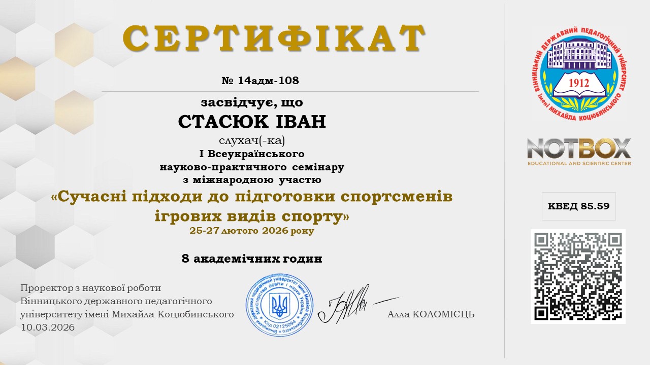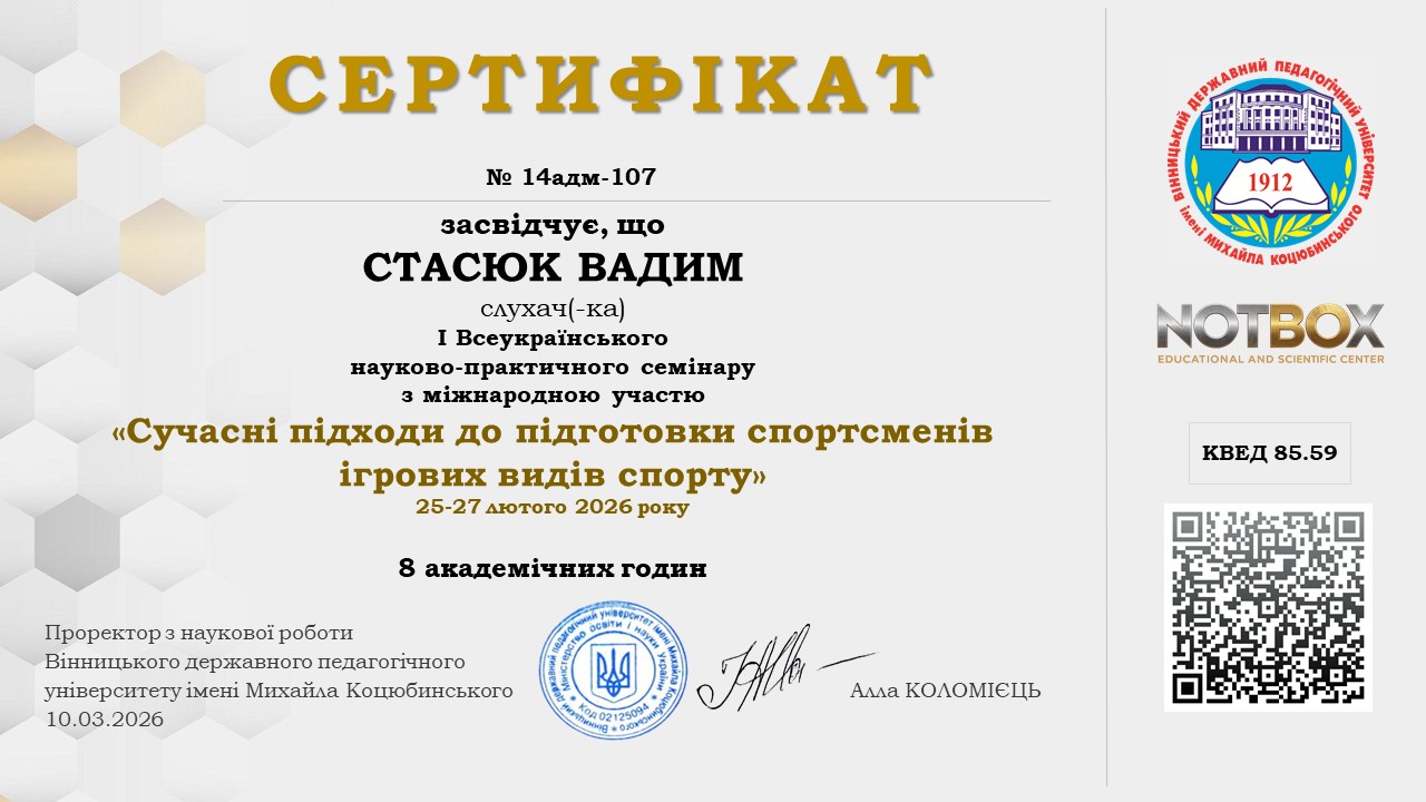 Стасюк Вадим Анатолійович – кандидат наук з фізичного виховання та спорту, старший викладач |