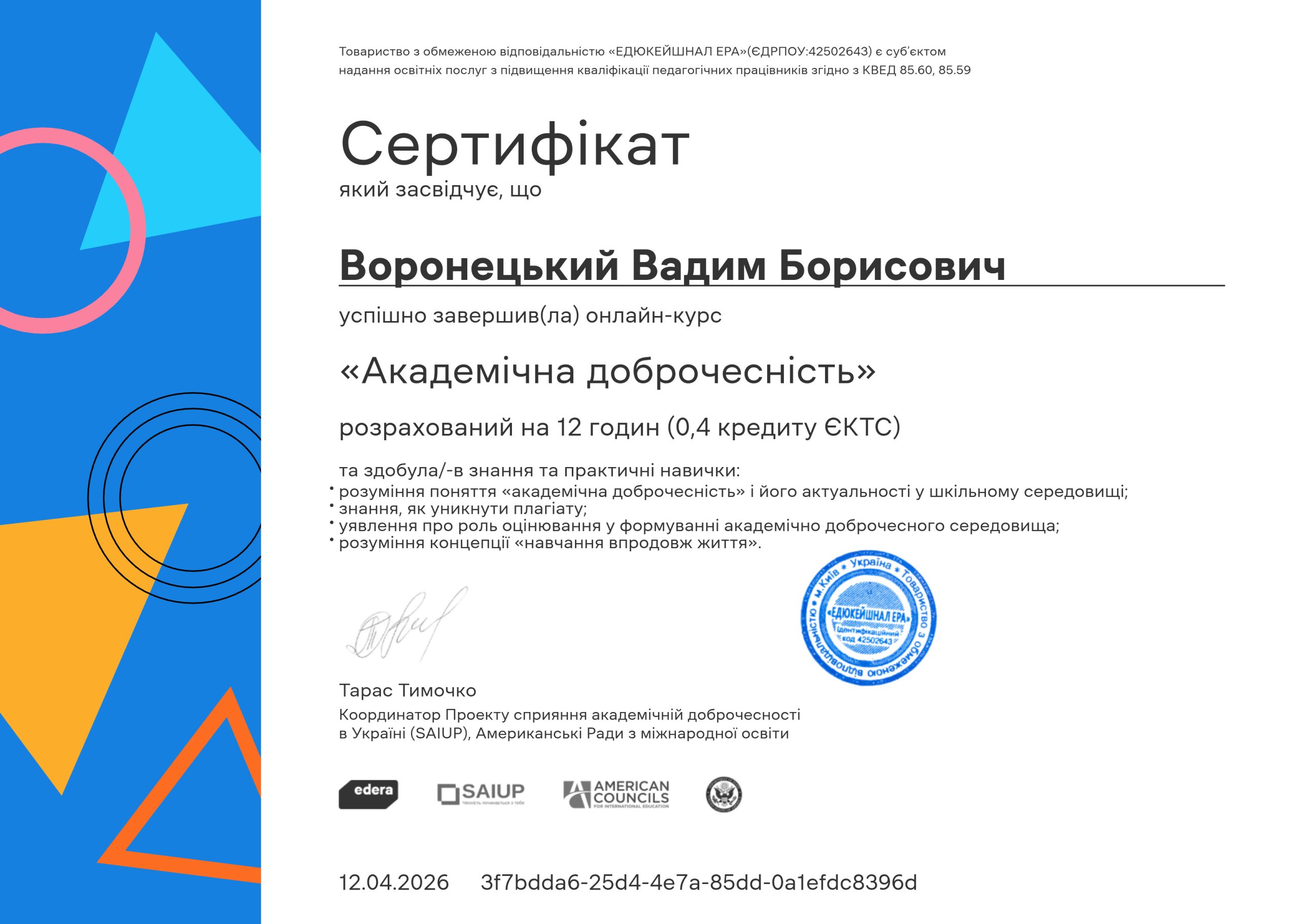 Воронецький Вадим Борисович – кандидат педагогічних наук, старший викладач |