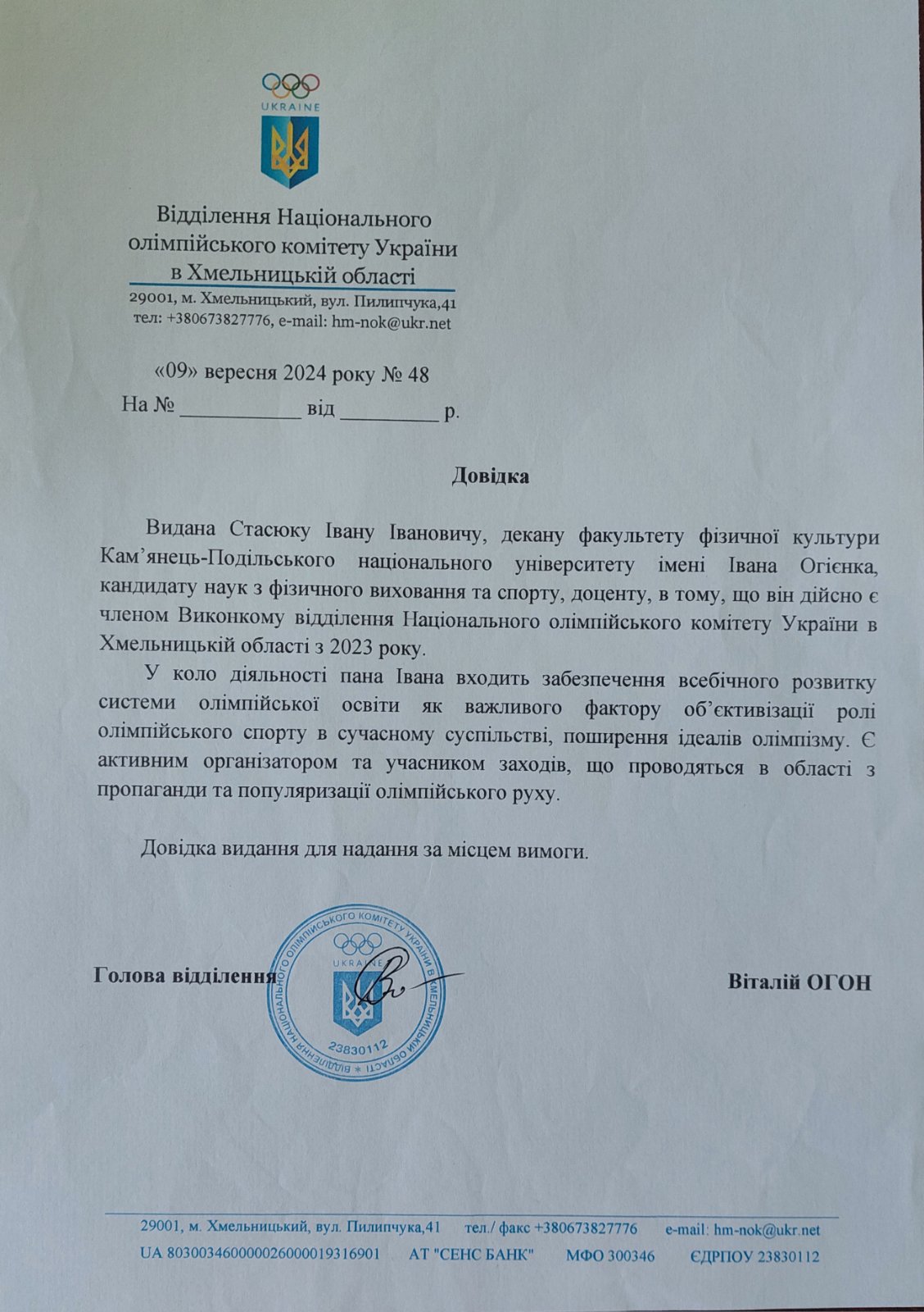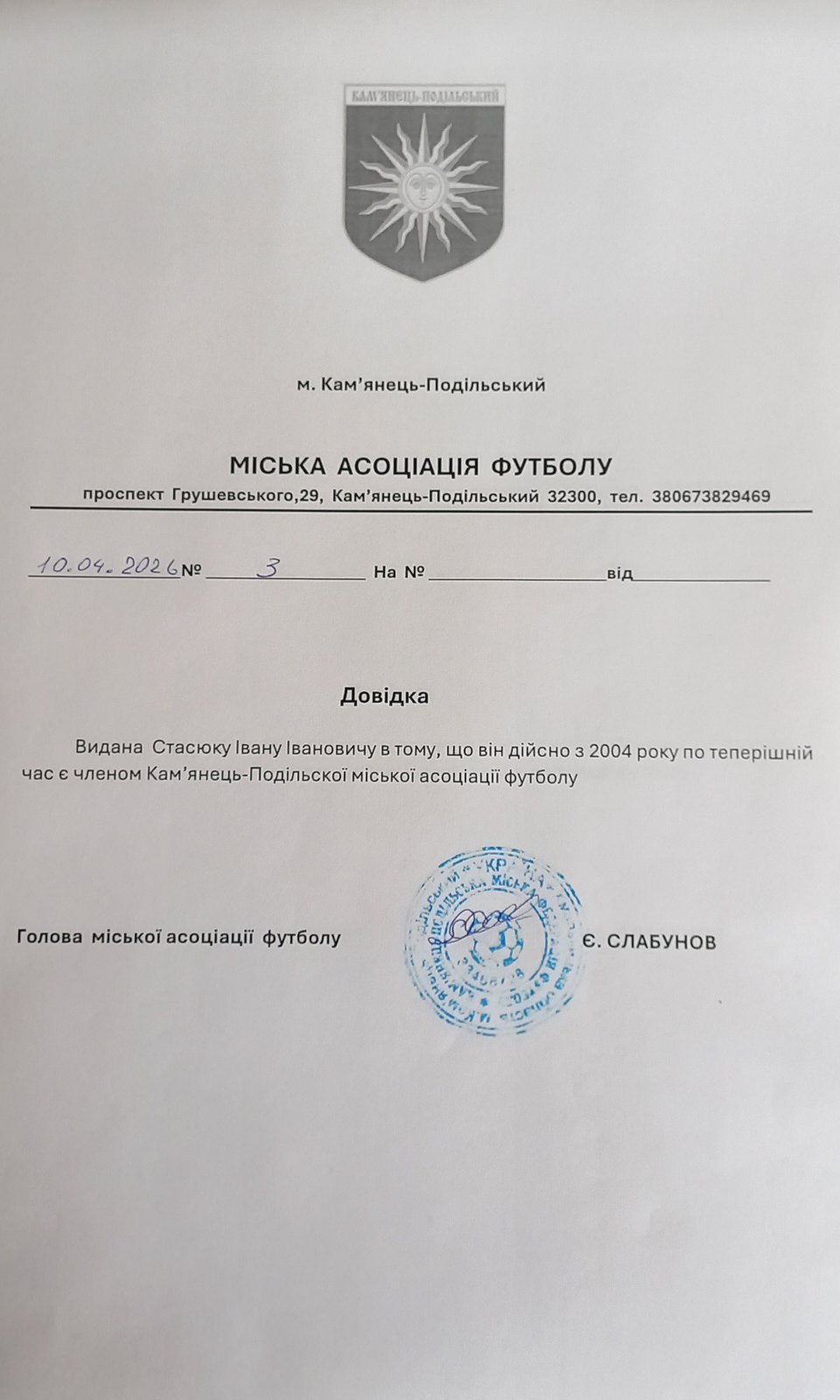 “Діяльність за спеціальністю у формі участі у професійних та/або громадських об’єднаннях” Виконком відділення Національного олімпійського комітету України в Хмельницькій області Кам’янець-Подільська міська асоціація футболу
