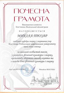 • Спортивні досягнення здобувачів вищої освіти кафедри спорту і спортивних ігор