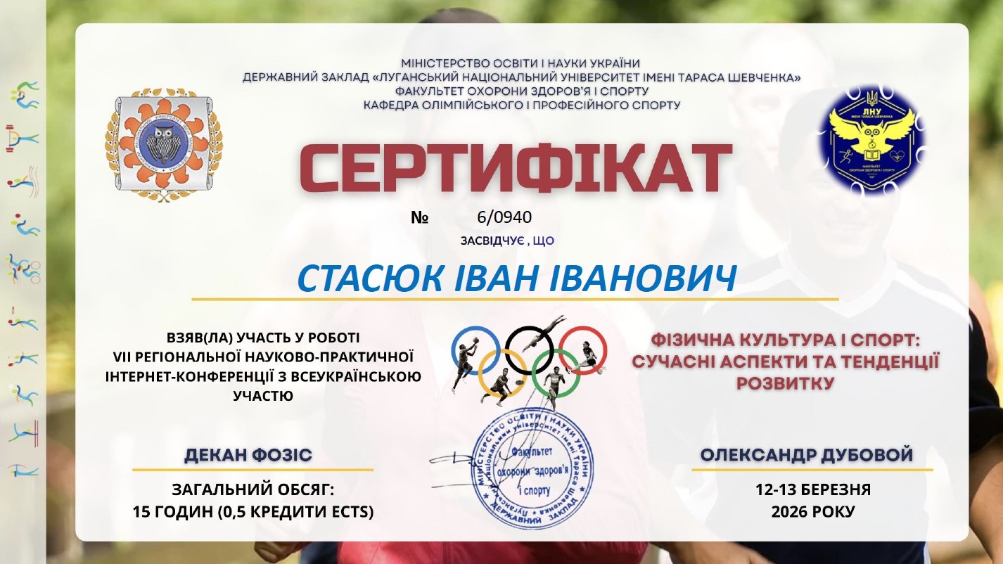 Стасюк Вадим Анатолійович – кандидат наук з фізичного виховання та спорту, старший викладач |